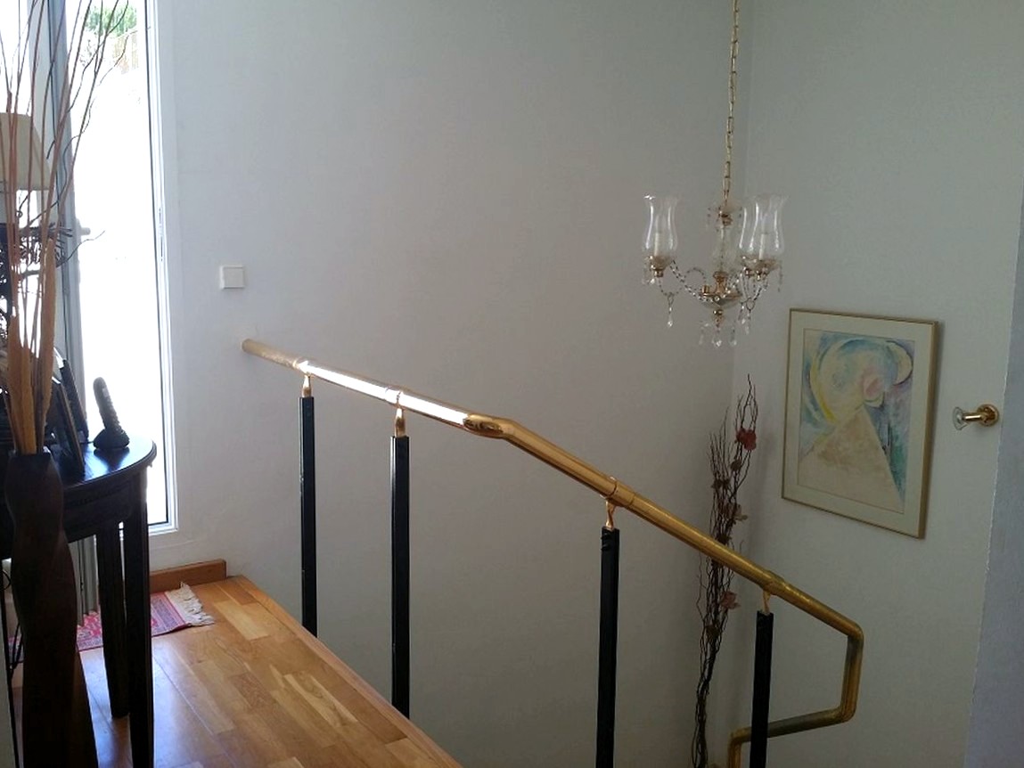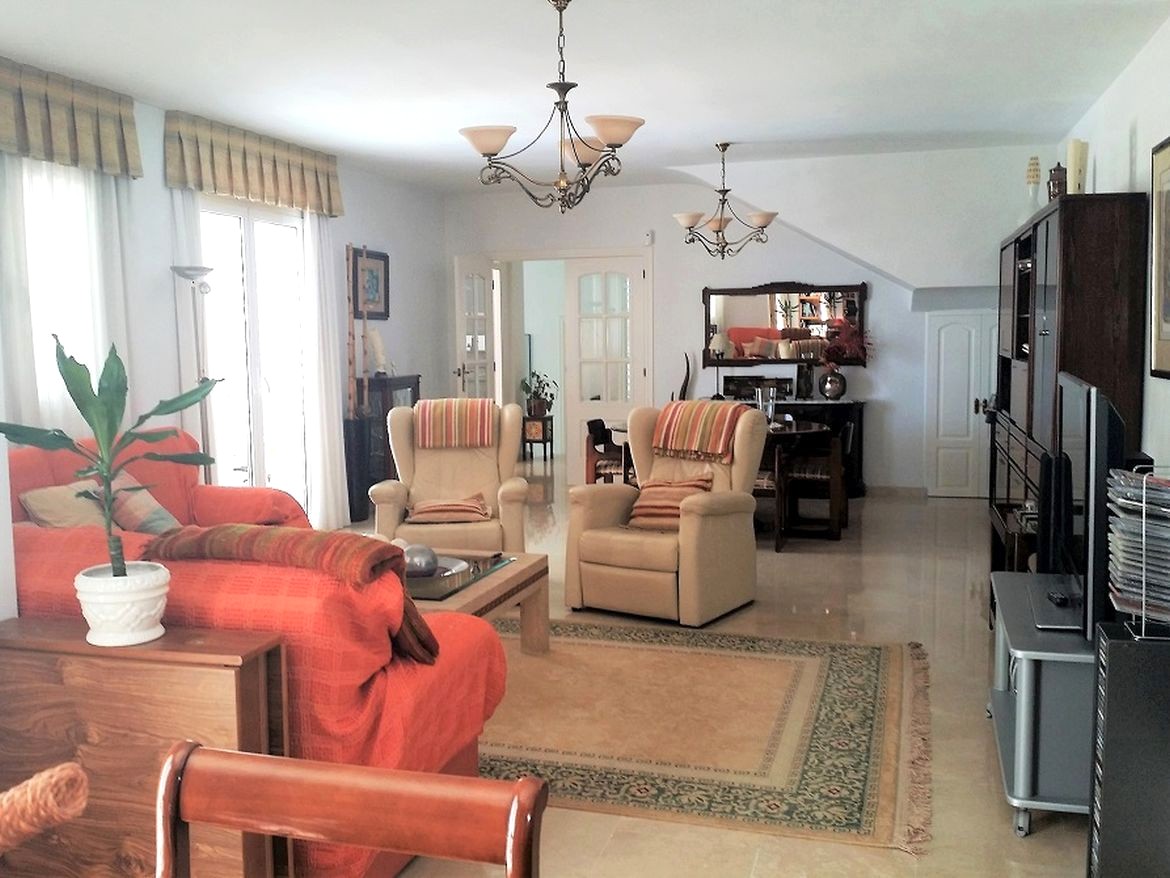 Första våningen består av stort allrum med utgång till terrass och poolen, 2 sovrum varav ett rum används som kontor, 1 badrum med dusch, rymligt kök med utgång till terrass, tvättstuga. En trappa upp finns 3 sovrum, 2 badrum och terrass.
