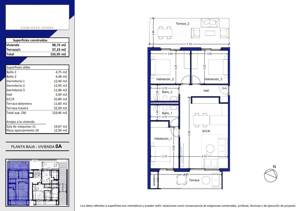 Våningsplan 0: sovrum 3, yta 136 kvm. Terrasser. Pris 351.750 €